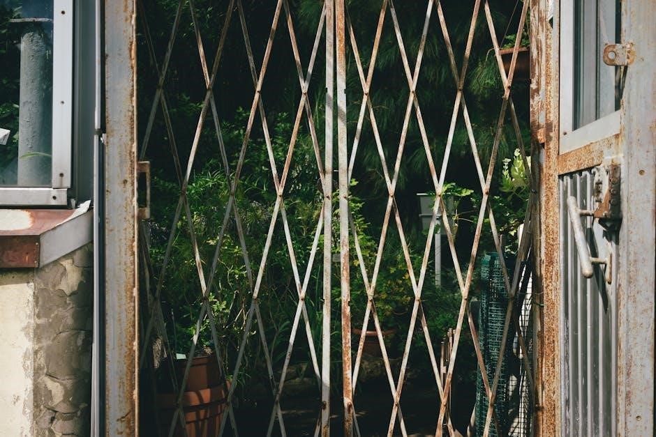 Look for rust spots, flaking paint, or a gritty texture on metal surfaces․ If corrosion is detected, clean the affected areas with a wire brush or sandpaper to remove loose rust․ Apply a rust inhibitor or protective coating to prevent further corrosion․ Promptly addressing corrosion ensures the manual release mechanism remains operational when you need it most, safeguarding access and preventing potential gate malfunctions․