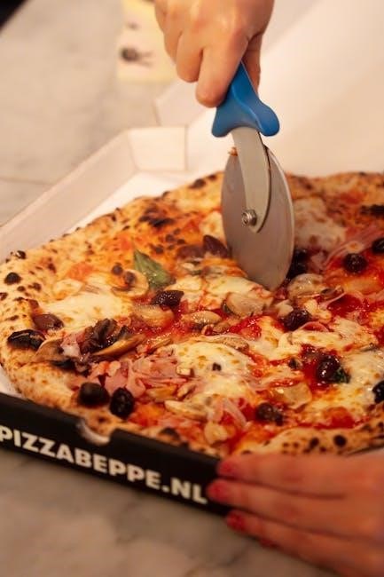 Allow the pizza to cool for a few minutes on a heat-safe surface before attempting to slice or serve. Use a pizza cutter or sharp knife with care. Be mindful of escaping steam when cutting‚ as it can cause burns. Supervise children closely when pizza is being served.
