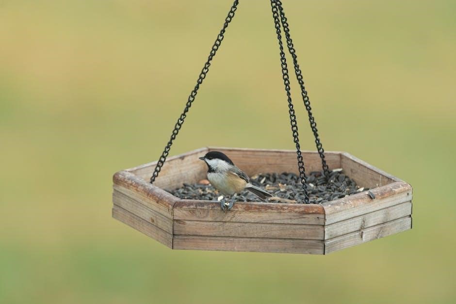 Follow the PDF manual’s clear diagrams and consider supplementing with helpful YouTube videos for a smooth‚ efficient build of your bird feeder.