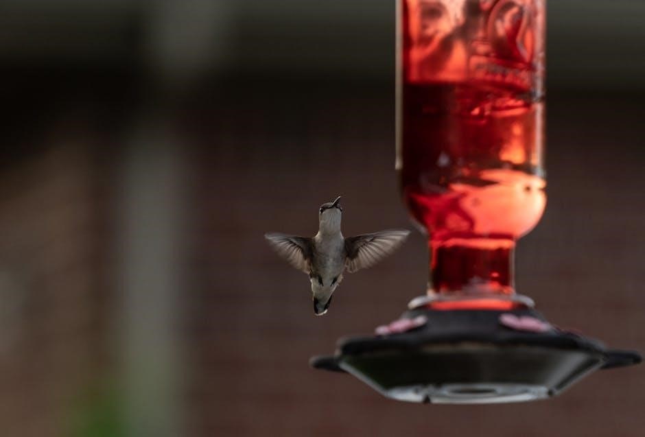 Ensure the feeder is placed in a visible‚ safe location‚ away from dense foliage where predators might lurk – the manual details optimal placement.